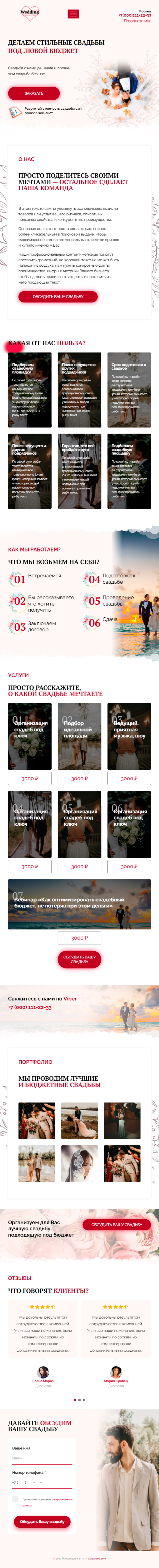 Закажите готовый продающий сайт лендинг #0440206 в Курске за 1-3 дня «под ключ»: свёрстан, отрисован и готов к рекламе. Тематика шаблона «Организация свадеб».