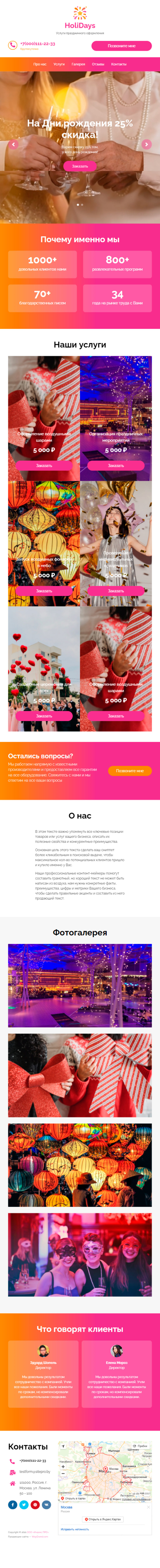 Закажите готовый продающий сайт лендинг #0440207 в Курске за 1-3 дня «под ключ»: свёрстан, отрисован и готов к рекламе. Тематика шаблона «Услуги праздничного оформления».