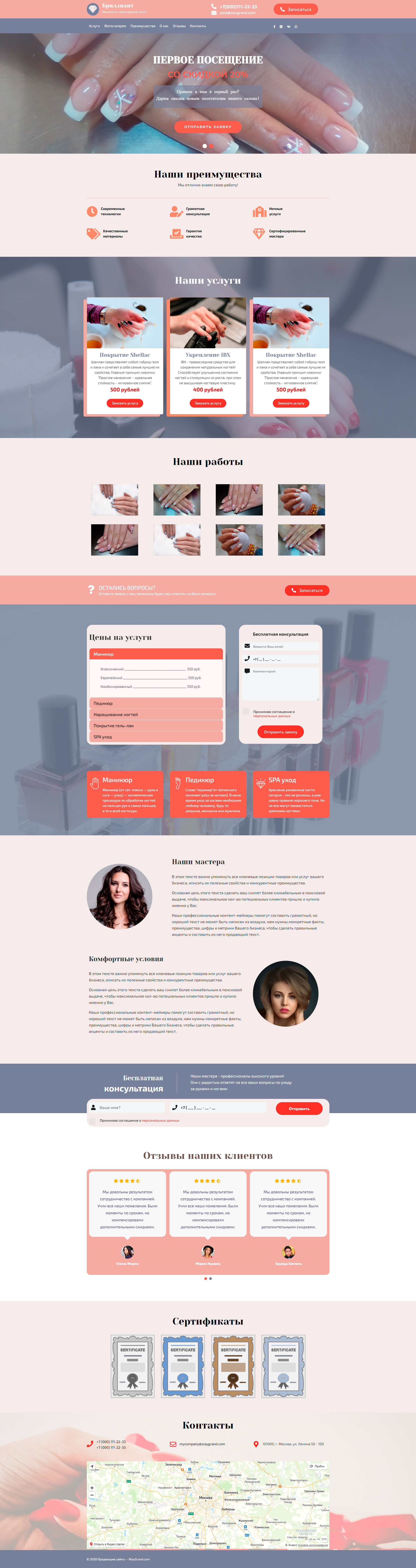 Закажите готовый продающий сайт лендинг #1107201 в Курске за 1-3 дня «под ключ»: свёрстан, отрисован и готов к рекламе. Тематика шаблона «Салон маникюра и педикюра».