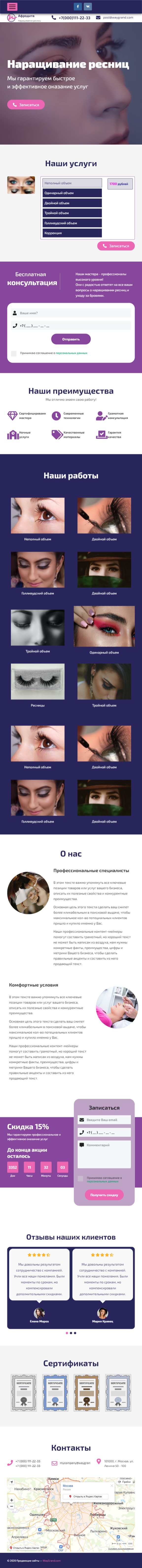 Закажите готовый продающий сайт лендинг #1117201 в Курске за 1-3 дня «под ключ»: свёрстан, отрисован и готов к рекламе. Тематика шаблона «Наращивание ресниц».