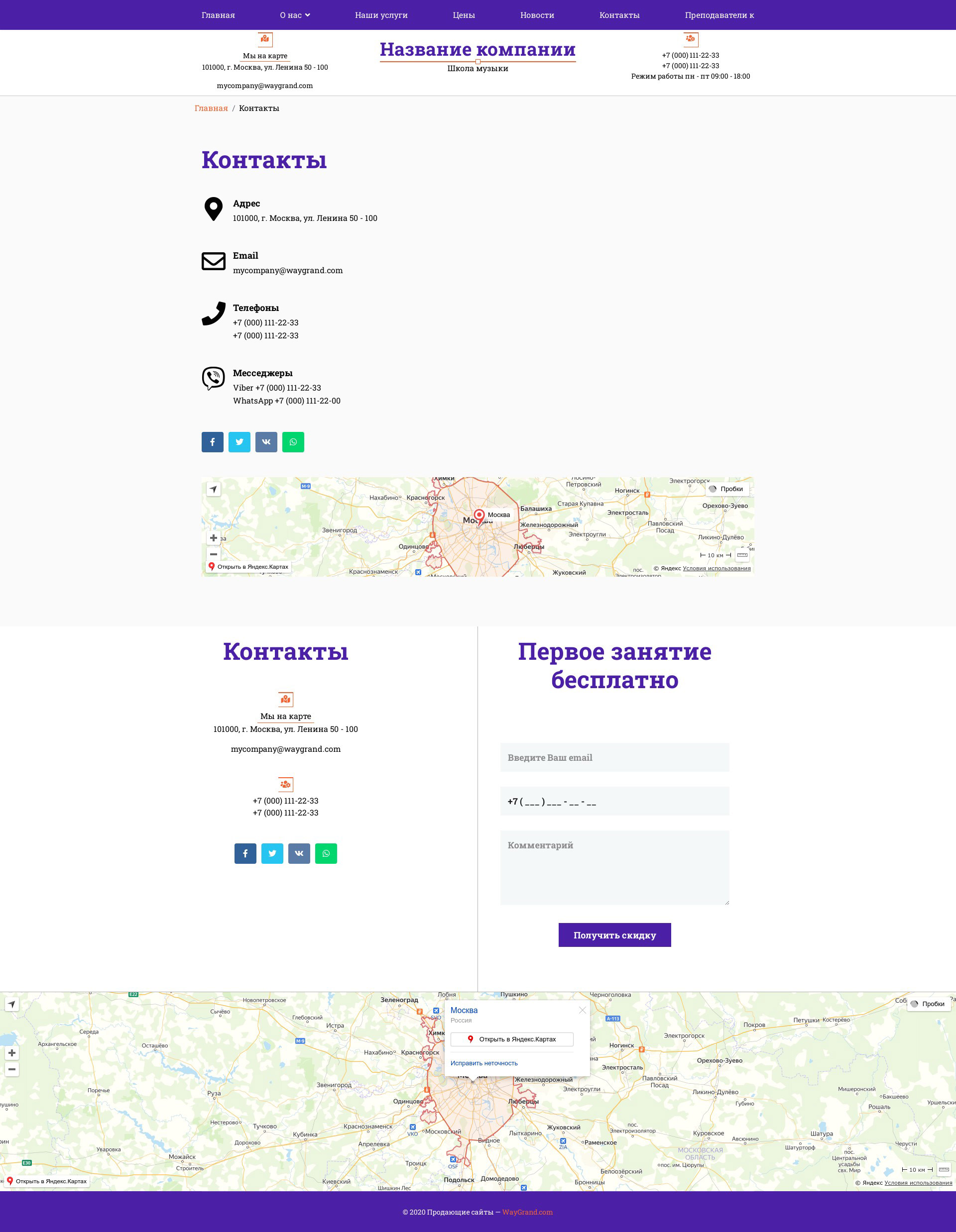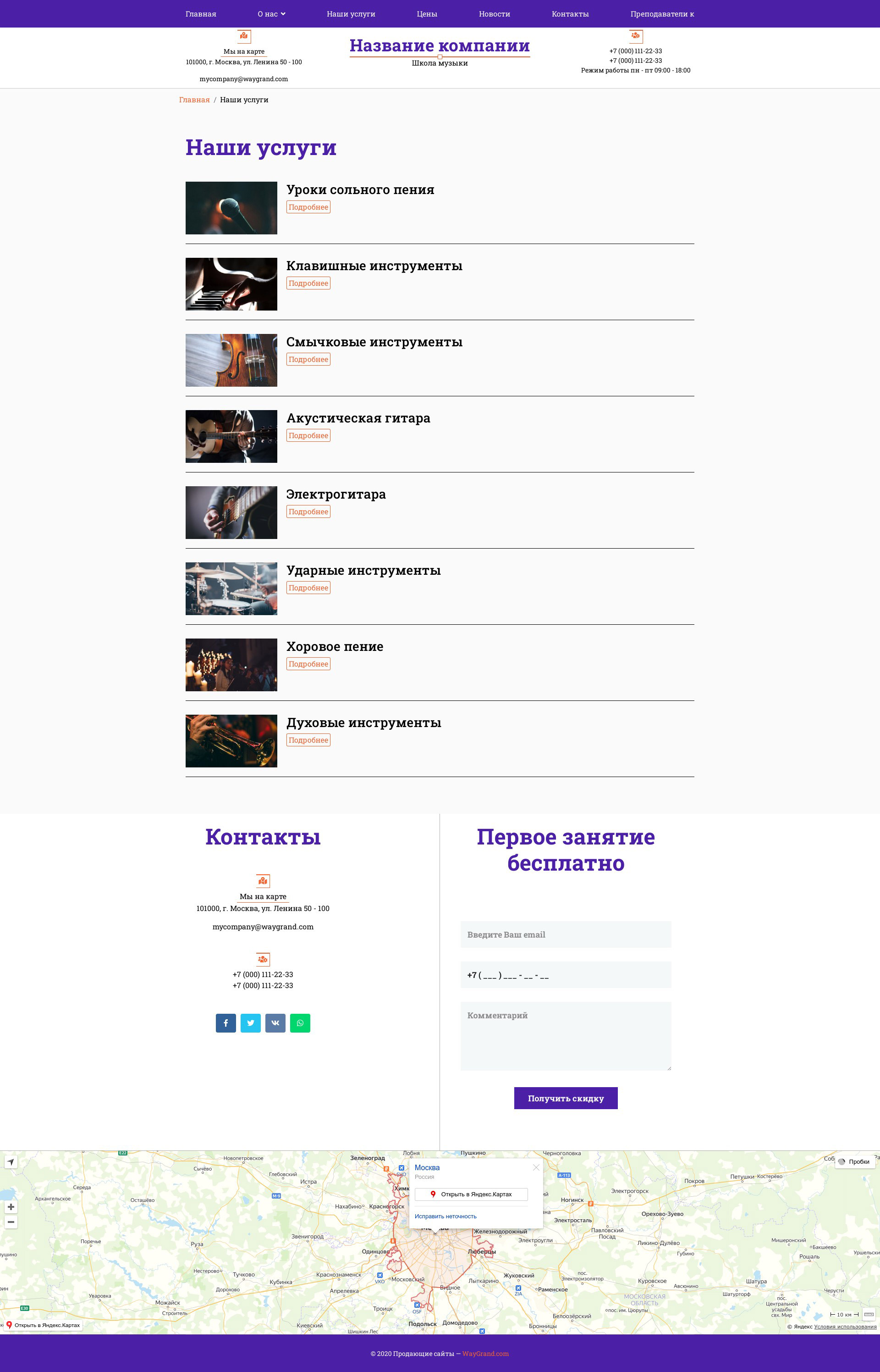 Закажите готовый продающий сайт визитка #1431301 в Курске за 5-7 дня «под ключ»: свёрстан, отрисован и готов к рекламе. Тематика шаблона «Школа музыки».