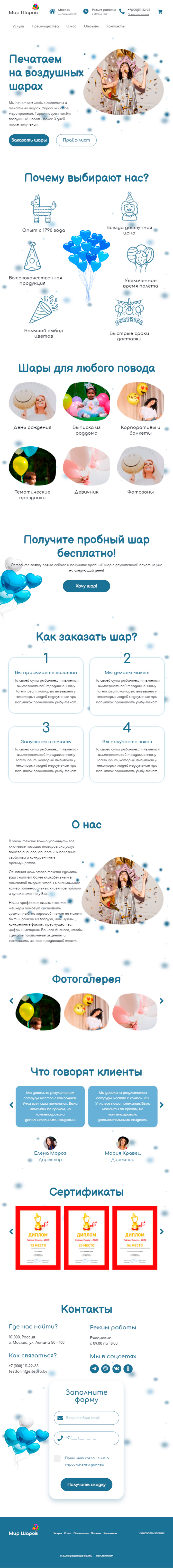 Закажите готовый продающий сайт лендинг #1826202 в Курске за 1-3 дня «под ключ»: свёрстан, отрисован и готов к рекламе. Тематика шаблона «Печать на воздушных шарах».