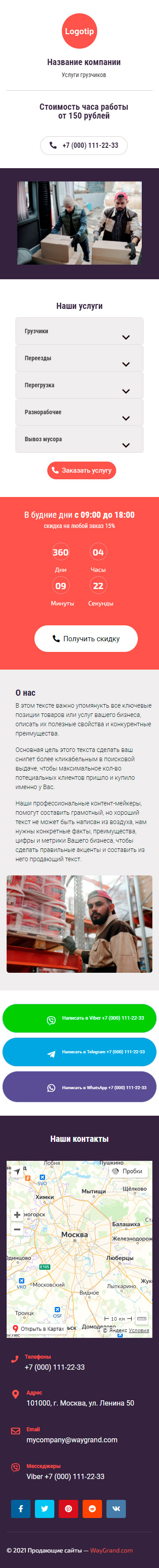Закажите готовый продающий сайт визитка #2562101 в Курске за 5-7 дня «под ключ»: свёрстан, отрисован и готов к рекламе. Тематика шаблона «Услуги грузчиков».