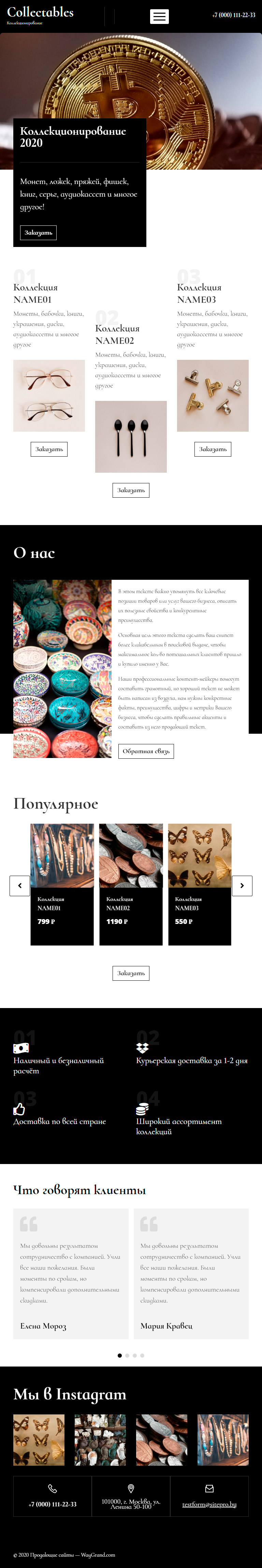 Закажите готовый продающий сайт лендинг #0801201 в Курске за 1-3 дня «под ключ»: свёрстан, отрисован и готов к рекламе. Тематика шаблона «Коллекционирование».