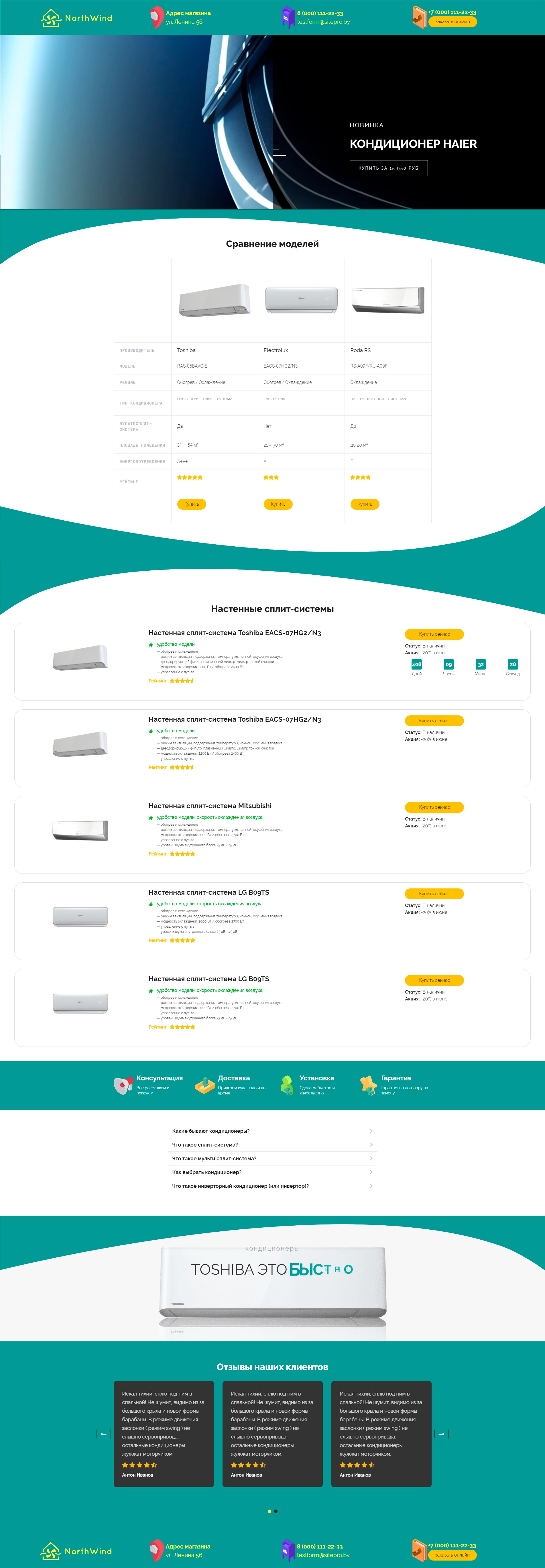 Закажите готовый продающий сайт лендинг #1323201 в Курске за 1-3 дня «под ключ»: свёрстан, отрисован и готов к рекламе. Тематика шаблона «Кондиционеры».