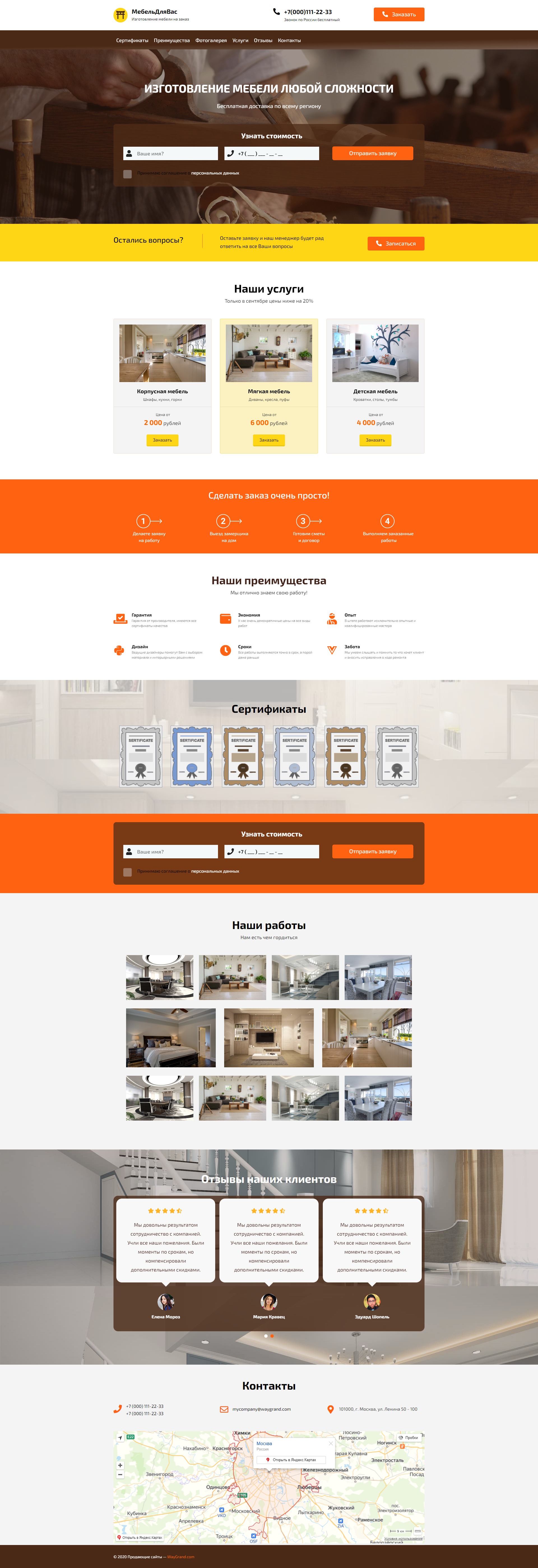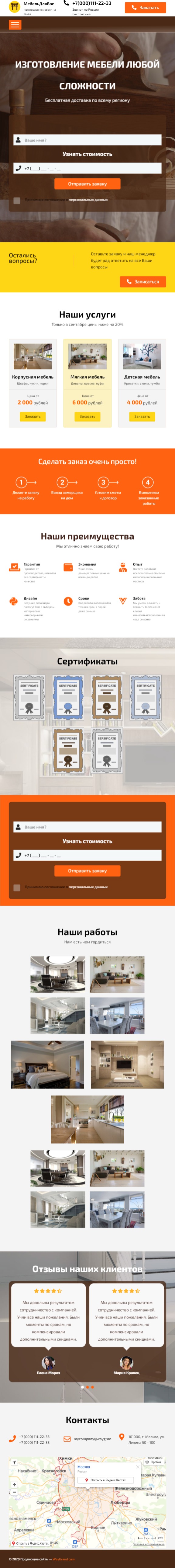 Закажите готовый продающий сайт лендинг #0903201 в Курске за 1-3 дня «под ключ»: свёрстан, отрисован и готов к рекламе. Тематика шаблона «Изготовление мебели».