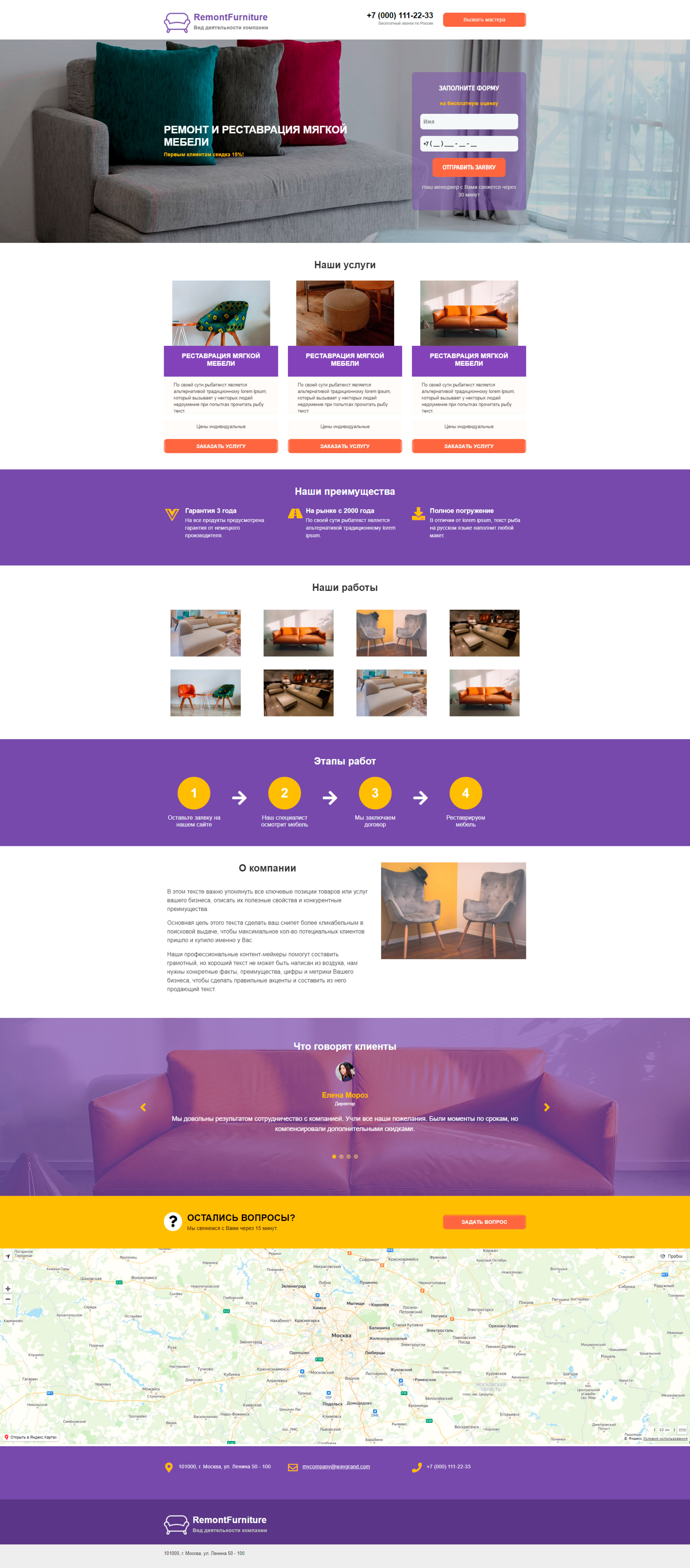 Закажите готовый продающий сайт лендинг #0924201 в Курске за 1-3 дня «под ключ»: свёрстан, отрисован и готов к рекламе. Тематика шаблона «Ремонт и реставрация мебели».