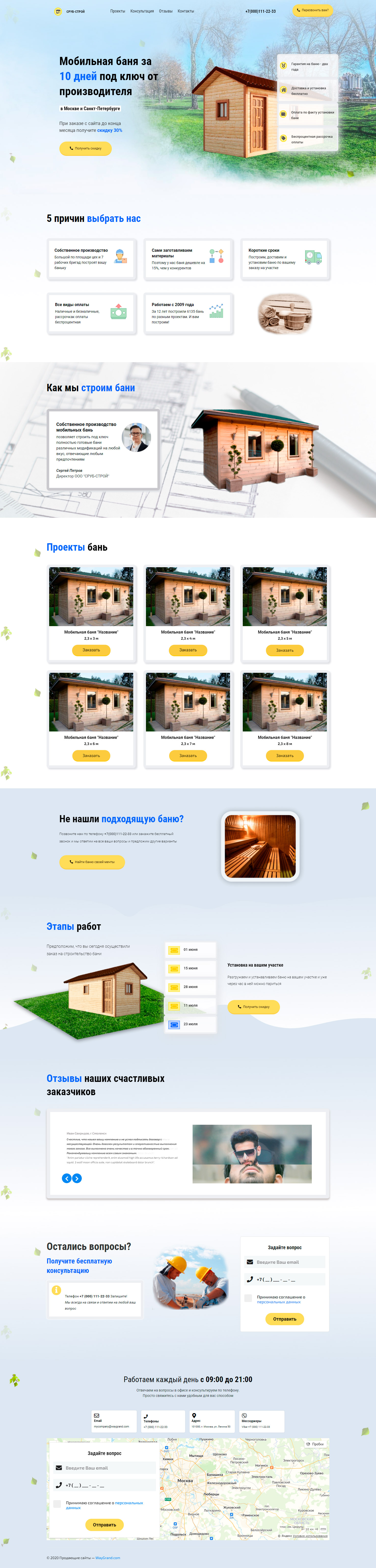 Закажите готовый продающий сайт лендинг #2172203 в Курске за 1-3 дня «под ключ»: свёрстан, отрисован и готов к рекламе. Тематика шаблона «Мобильная баня».