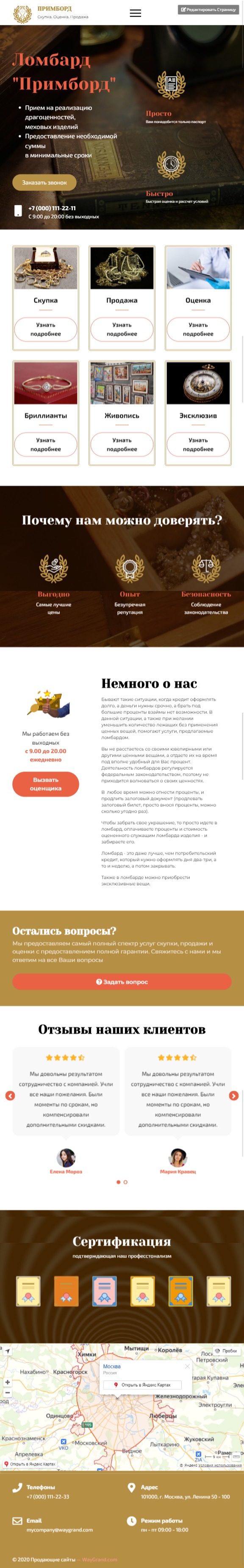 Закажите готовый продающий сайт лендинг #2408201 в Курске за 1-3 дня «под ключ»: свёрстан, отрисован и готов к рекламе. Тематика шаблона «Ломбард».
