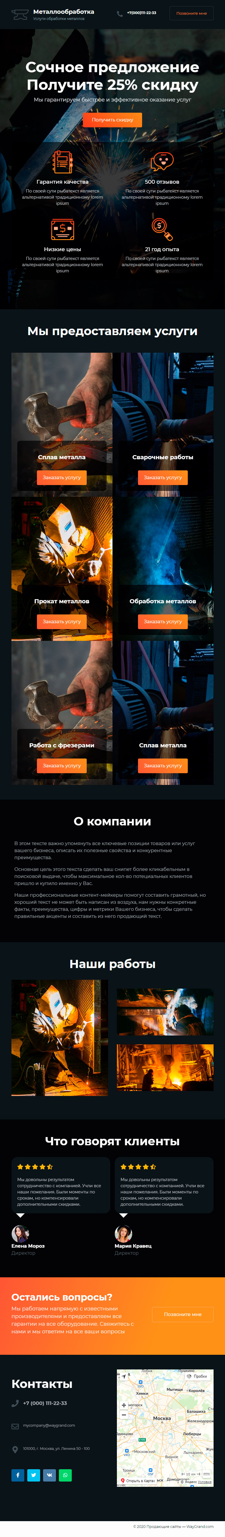 Закажите готовый продающий сайт лендинг #1209201 в Курске за 1-3 дня «под ключ»: свёрстан, отрисован и готов к рекламе. Тематика шаблона «Металлообработка».