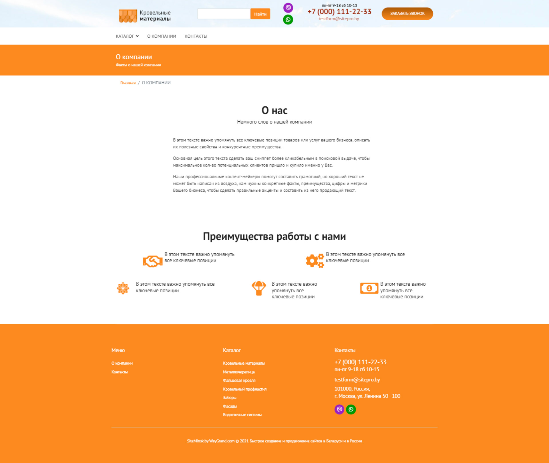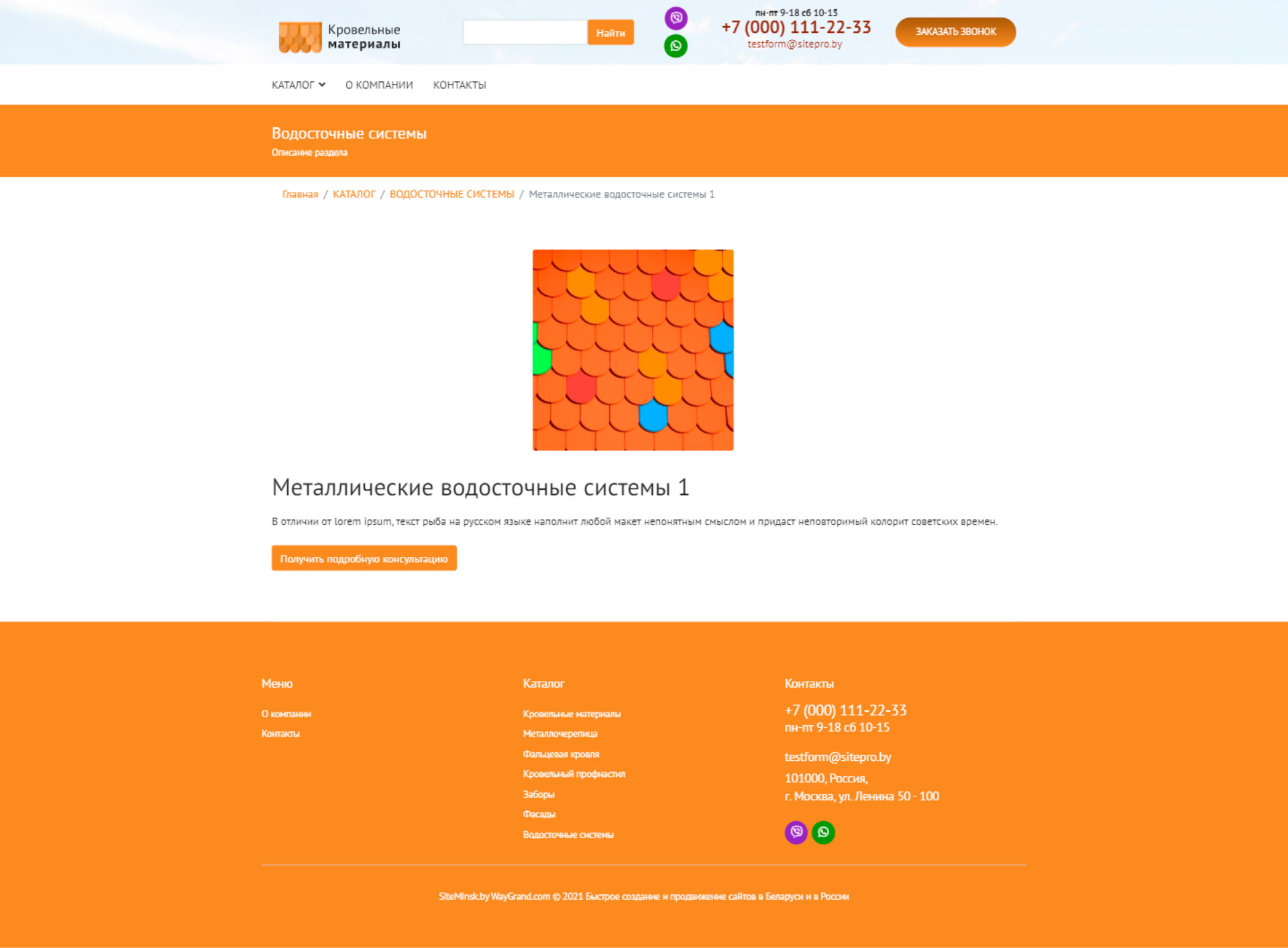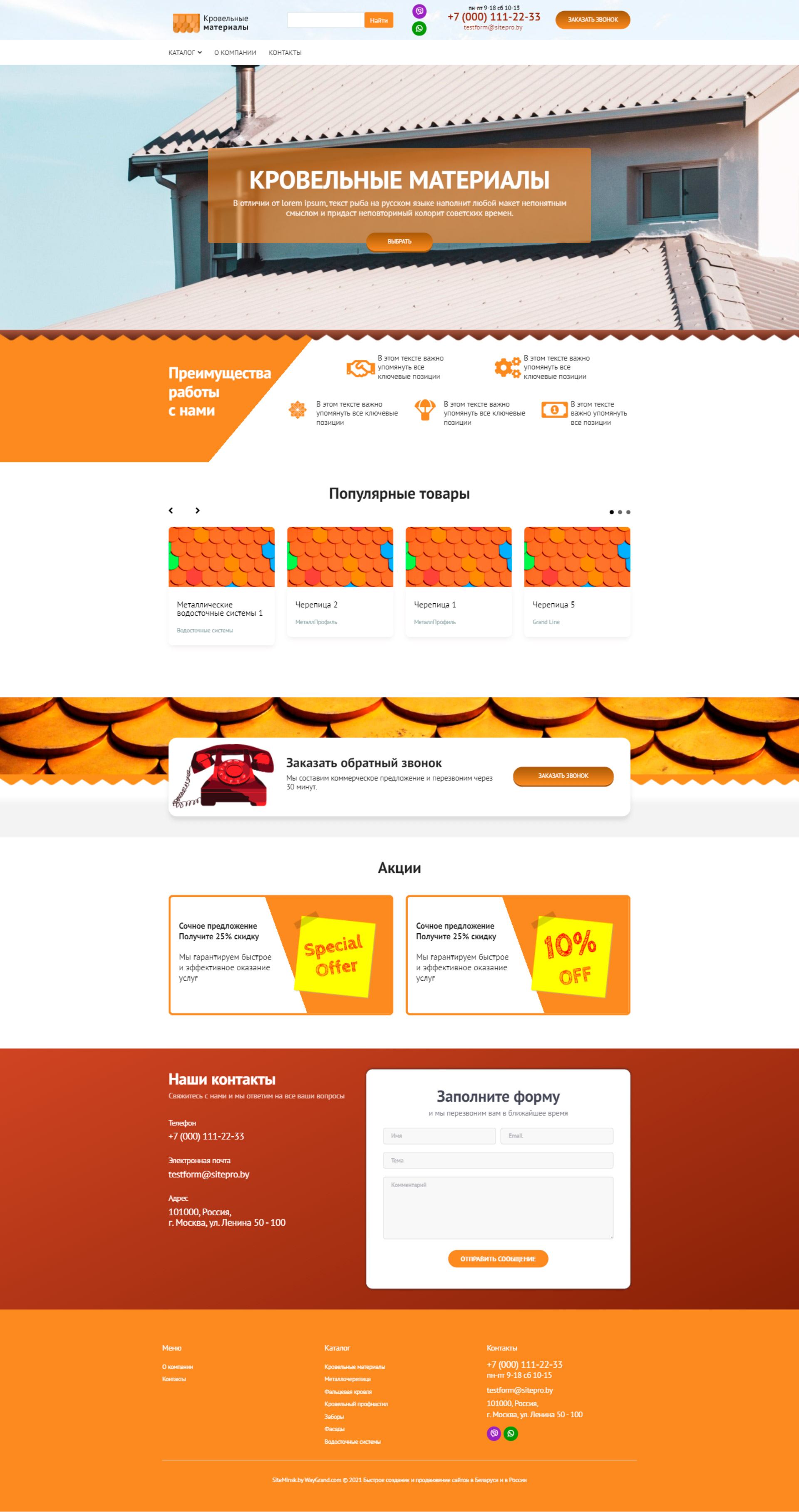 Закажите готовый продающий сайт визитка #2023402 в Курске за 5-7 дня «под ключ»: свёрстан, отрисован и готов к рекламе. Тематика шаблона «Кровельные материалы».