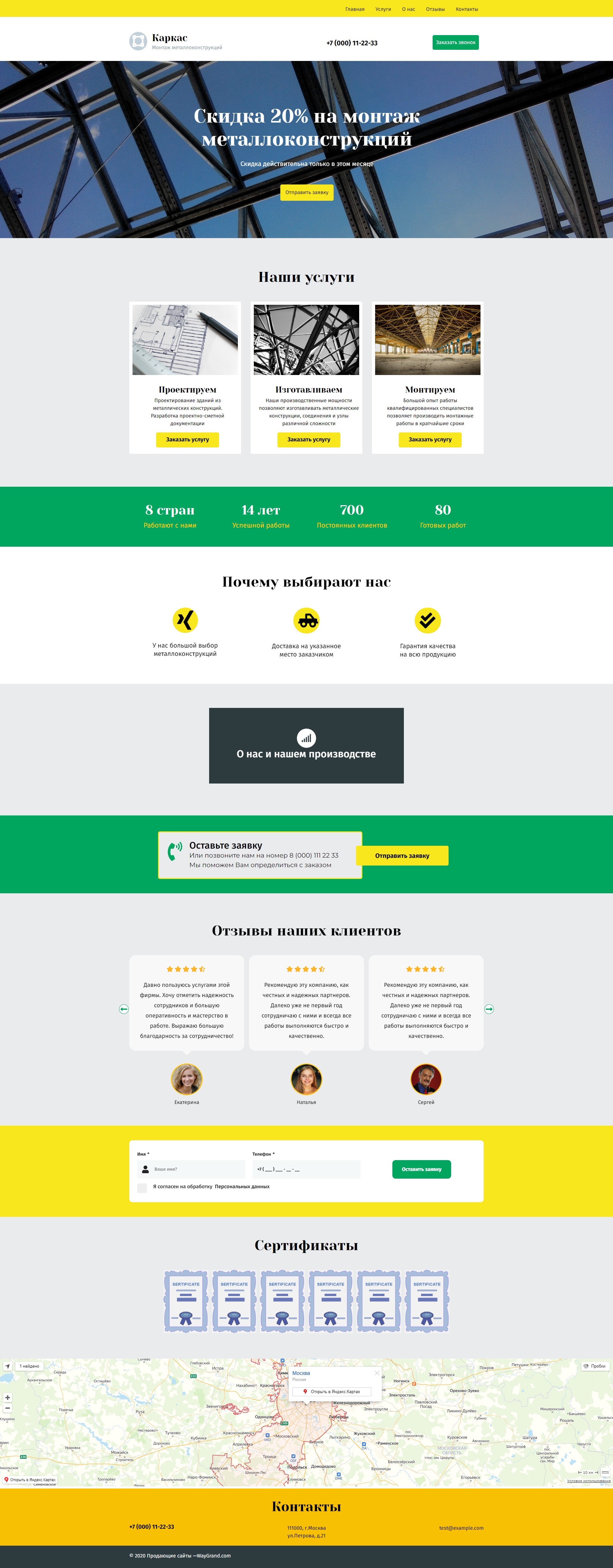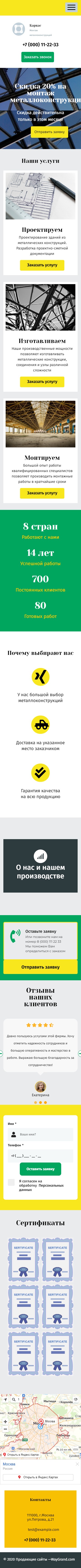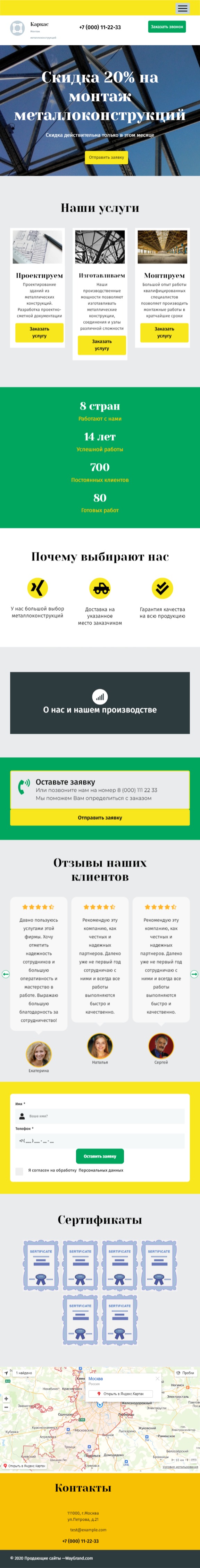 Закажите готовый продающий сайт лендинг #2027201 в Курске за 1-3 дня «под ключ»: свёрстан, отрисован и готов к рекламе. Тематика шаблона «Металлоконструкции».
