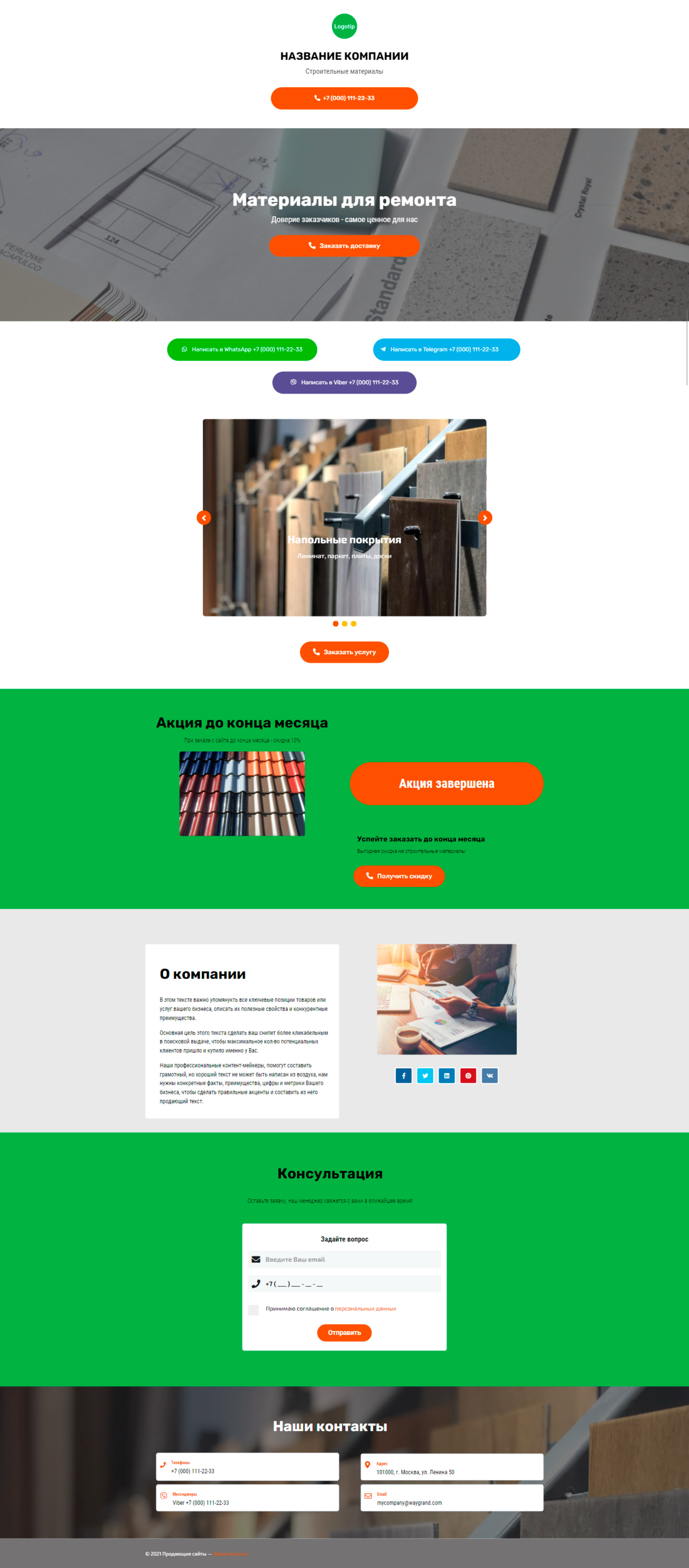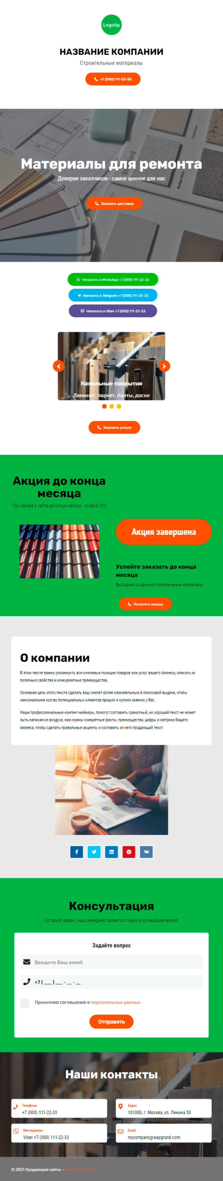 Закажите готовый продающий сайт визитка #2050101 в Курске за 5-7 дня «под ключ»: свёрстан, отрисован и готов к рекламе. Тематика шаблона «Строительные материалы».