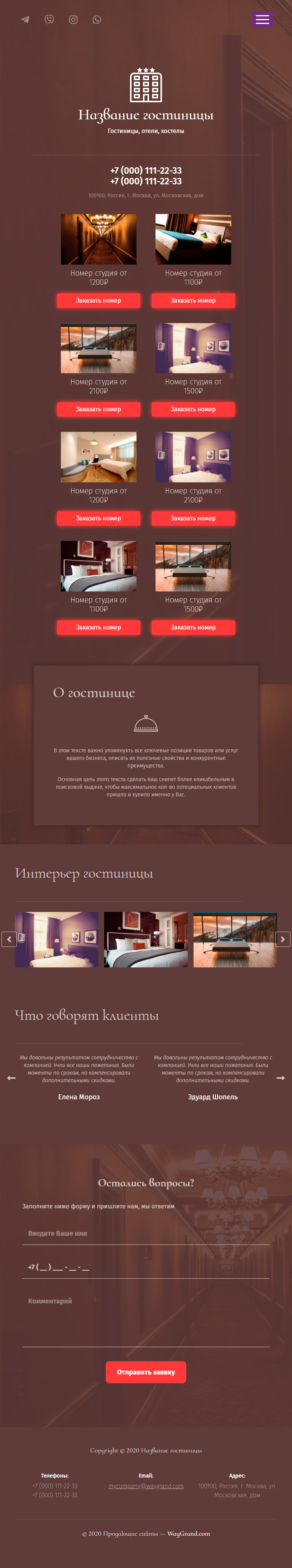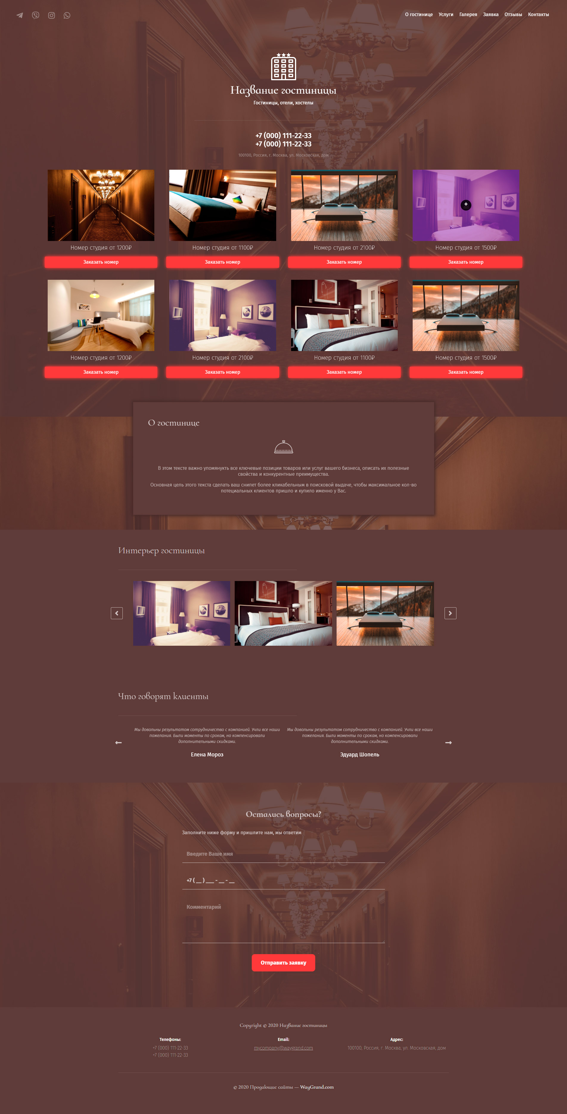 Закажите готовый продающий сайт лендинг #1905202 в Курске за 1-3 дня «под ключ»: свёрстан, отрисован и готов к рекламе. Тематика шаблона «Гостиница, повышенный комфорт».