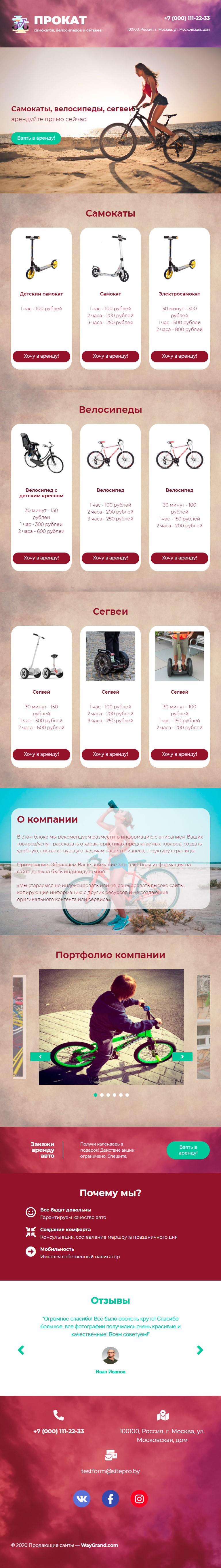 Закажите готовый продающий сайт лендинг #1907201 в Курске за 1-3 дня «под ключ»: свёрстан, отрисован и готов к рекламе. Тематика шаблона «Прокат самокатов и велосипедов».