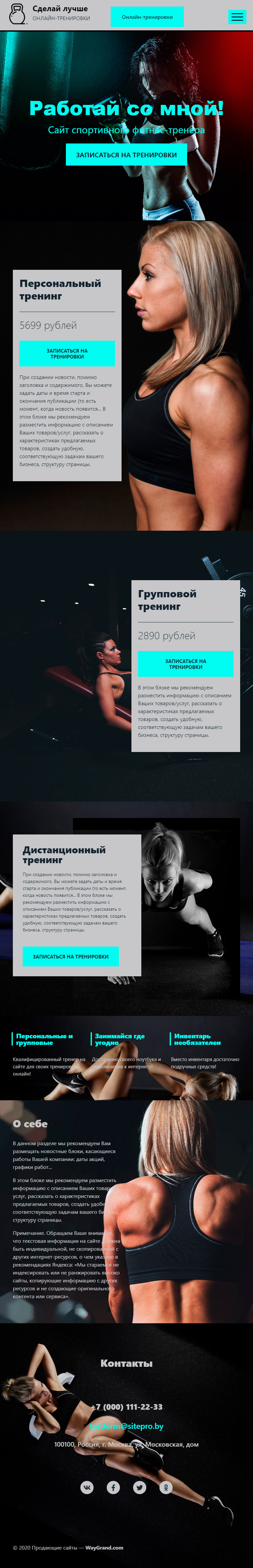 Закажите готовый продающий сайт лендинг #1955203 в Курске за 1-3 дня «под ключ»: свёрстан, отрисован и готов к рекламе. Тематика шаблона «Фитнес тренер».