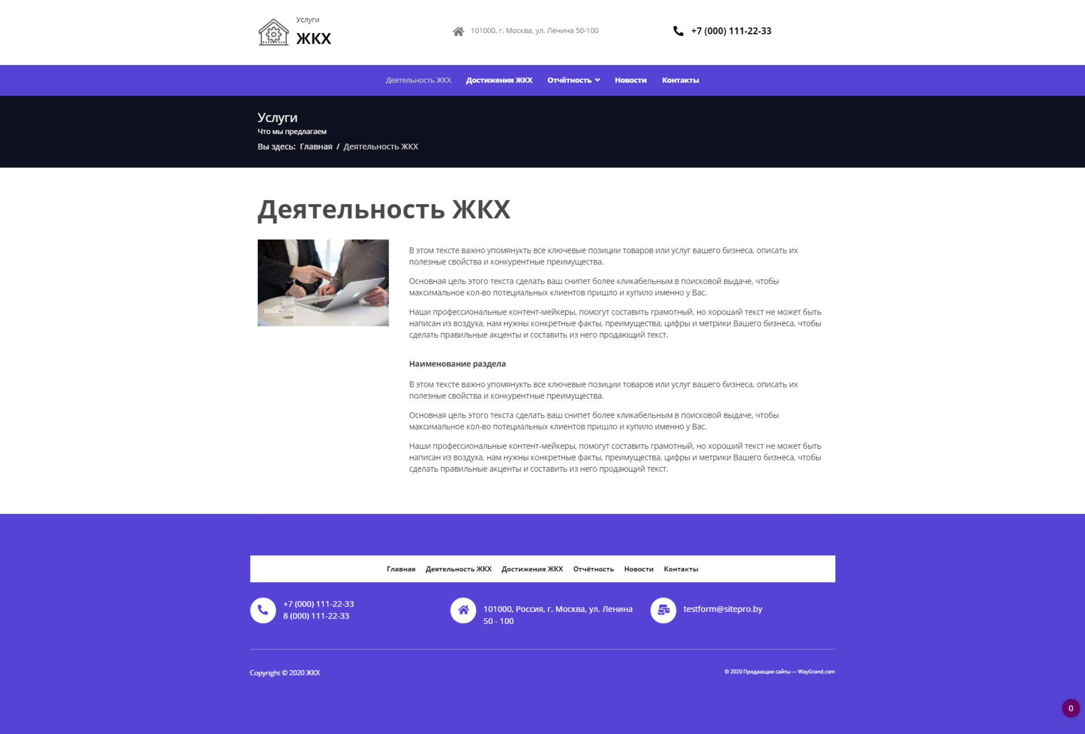 <p>Закажите готовый продающий сайт визитка #0612301 в Курске за 5-7 дня «под ключ»: свёрстан, отрисован и готов к рекламе. Тематика шаблона «ЖКХ».</p>