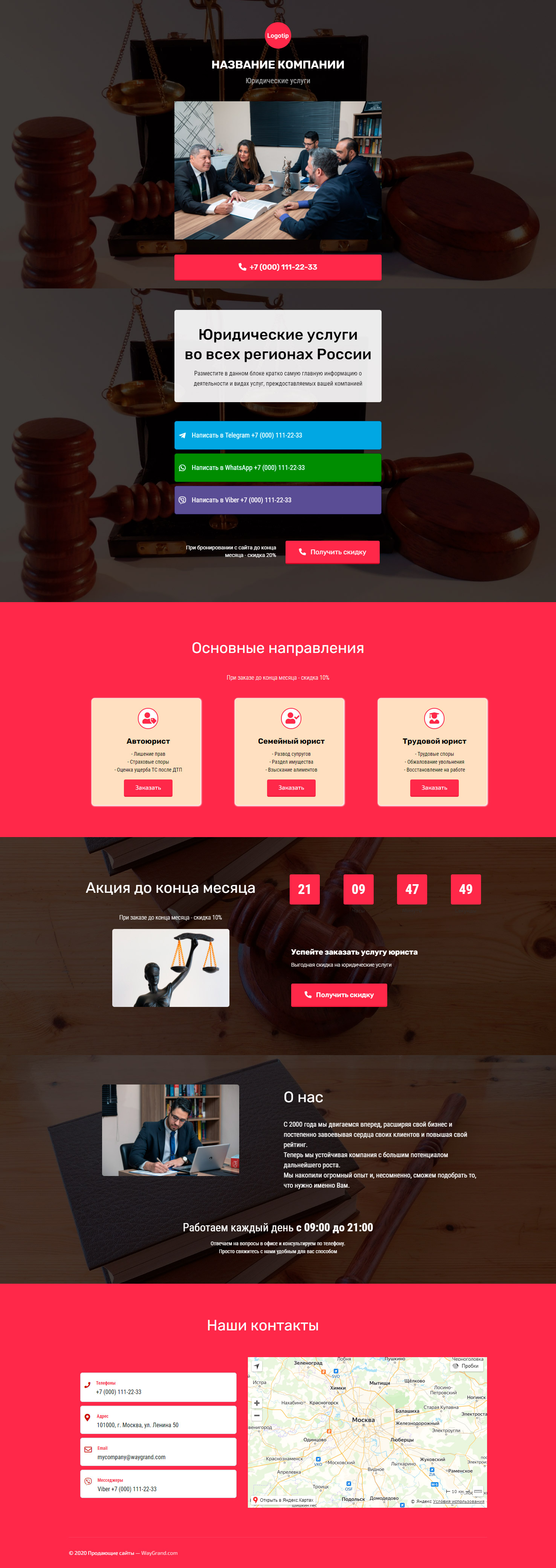Закажите готовый продающий сайт визитка #2869101 в Курске за 5-7 дня «под ключ»: свёрстан, отрисован и готов к рекламе. Тематика шаблона «Юридические услуги».