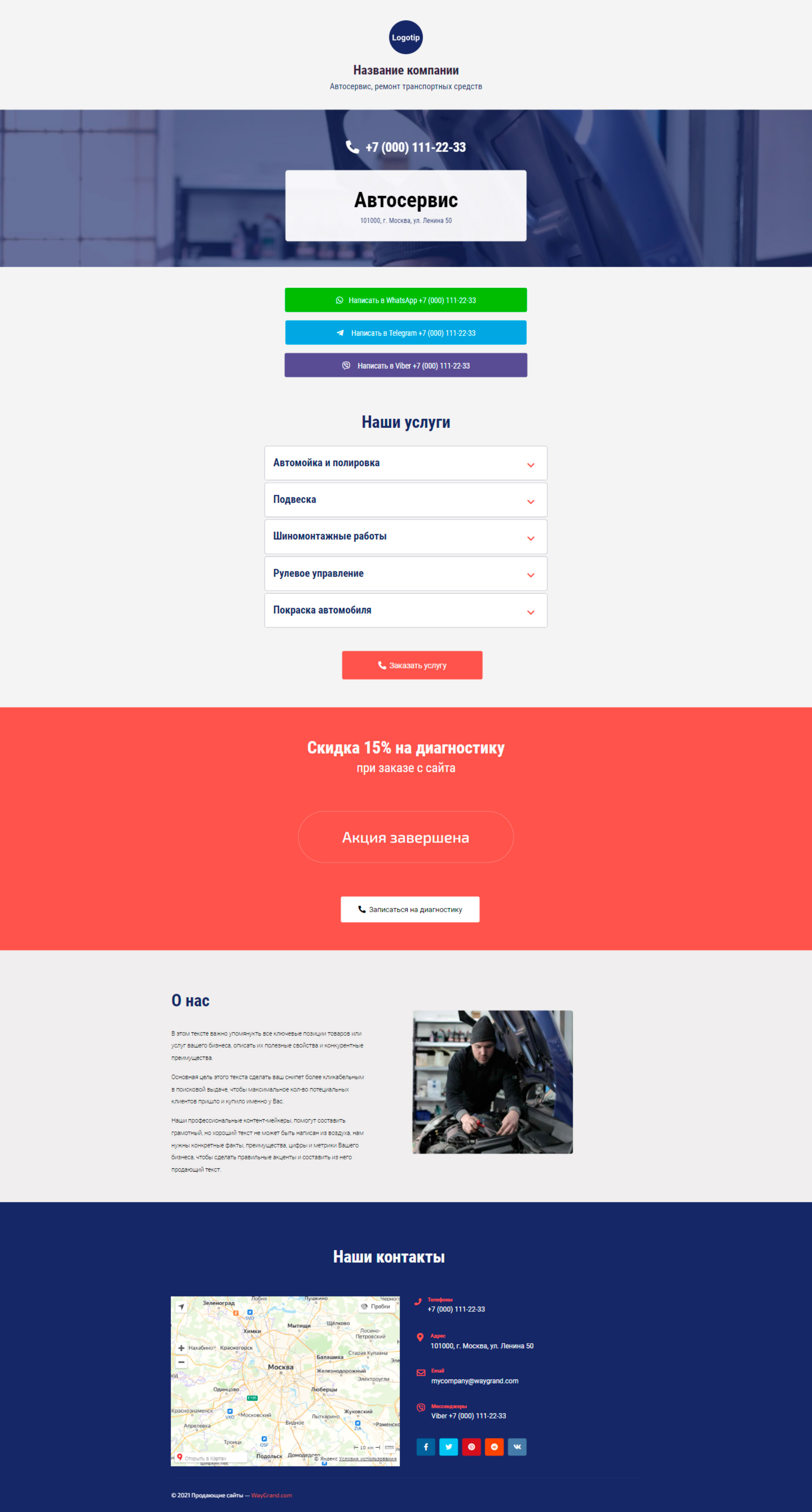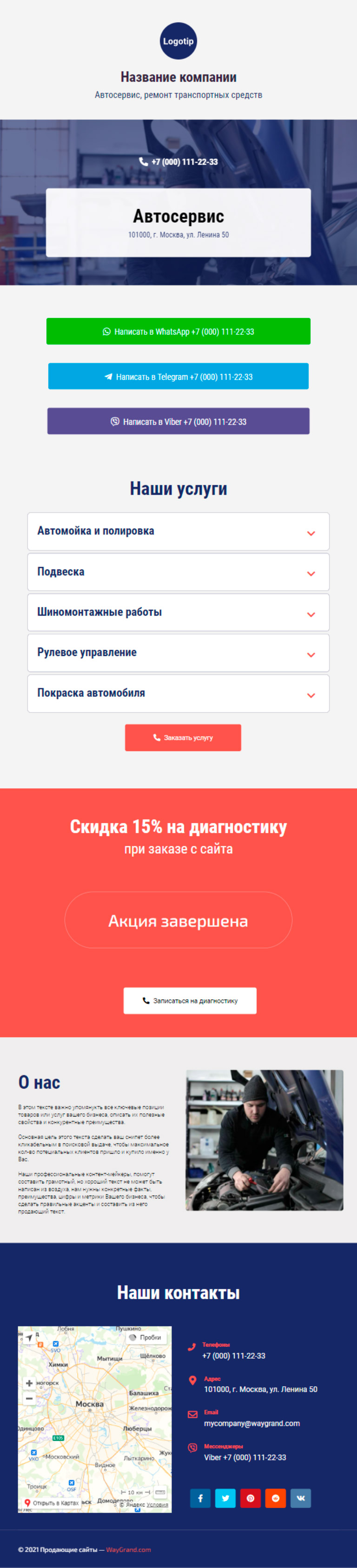 Закажите готовый продающий сайт визитка #0210101 в Курске за 5-7 дня «под ключ»: свёрстан, отрисован и готов к рекламе. Тематика шаблона «Автосервис, ремонт транспортных средств».
