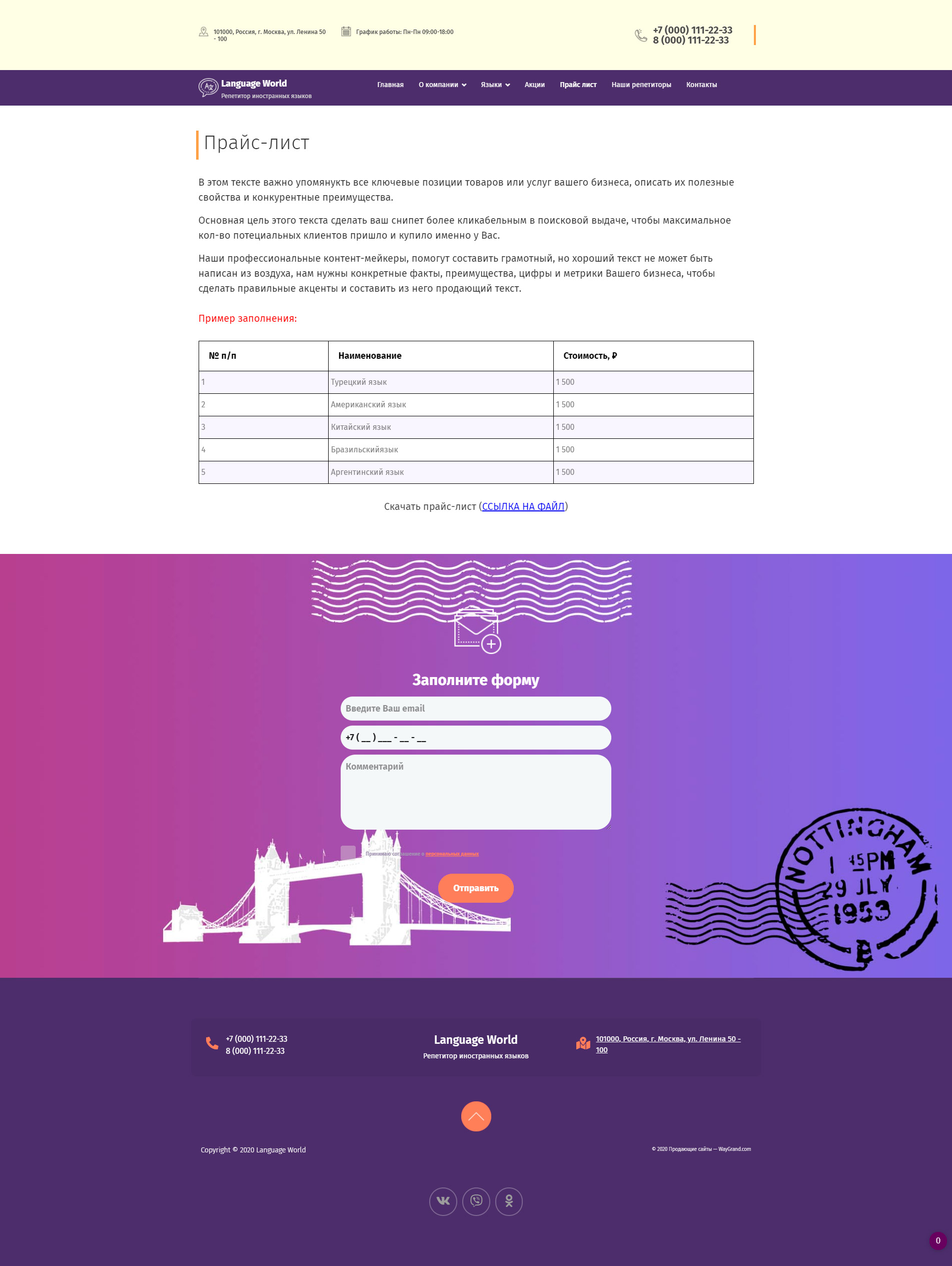 - Страница "Прайс-лист"