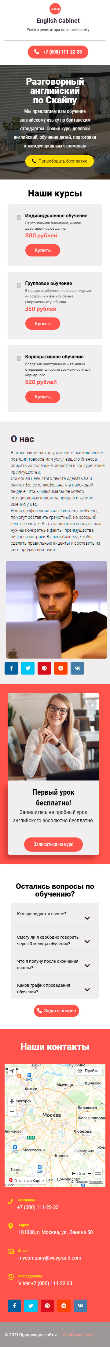 Закажите готовый продающий сайт визитка #1463101 в Курске за 5-7 дня «под ключ»: свёрстан, отрисован и готов к рекламе. Тематика шаблона «Услуги репетитора по английскому».