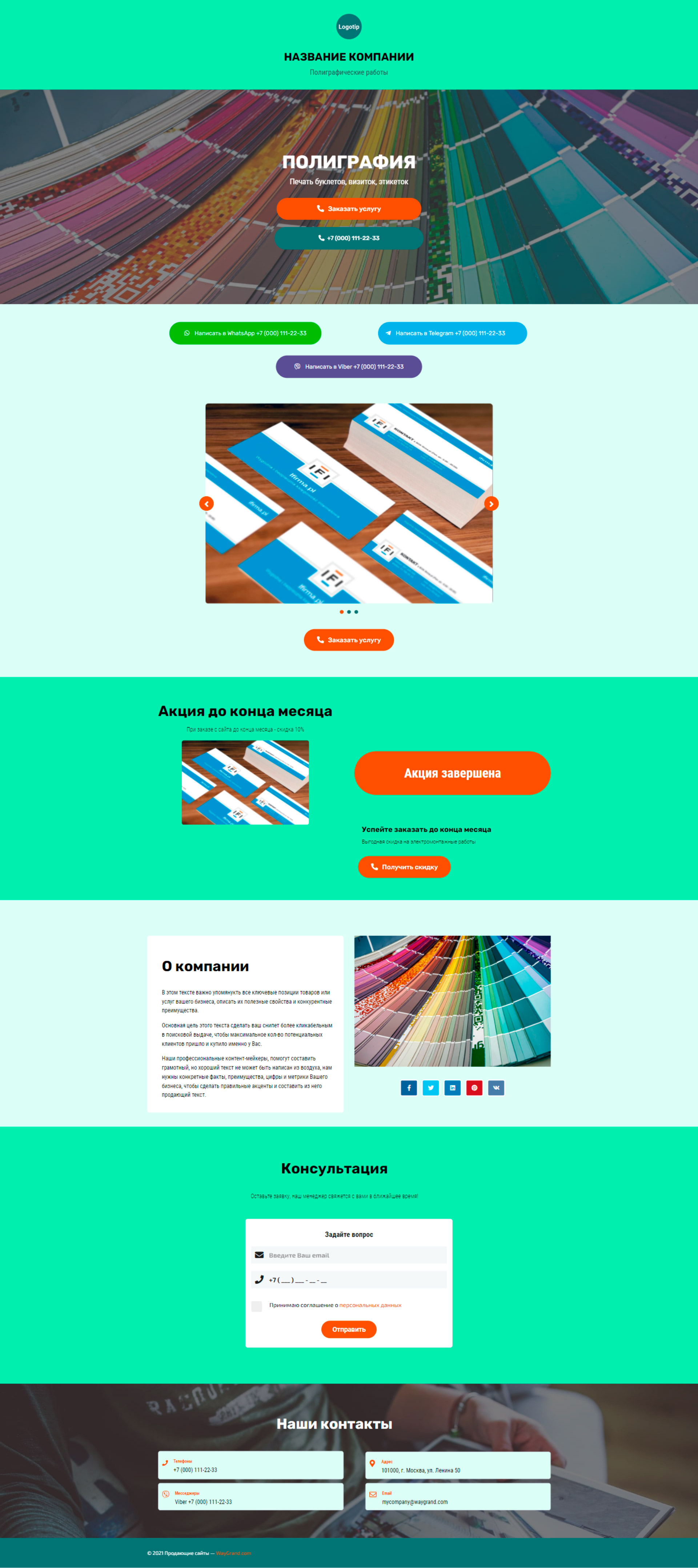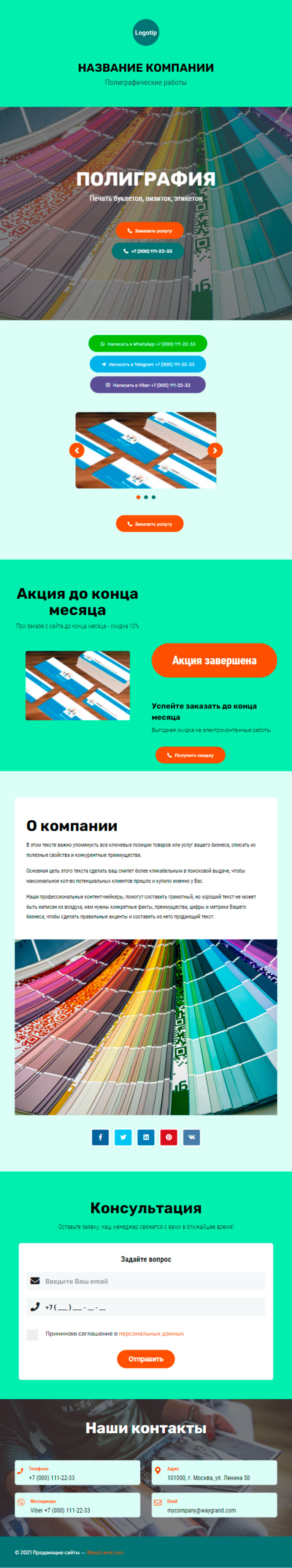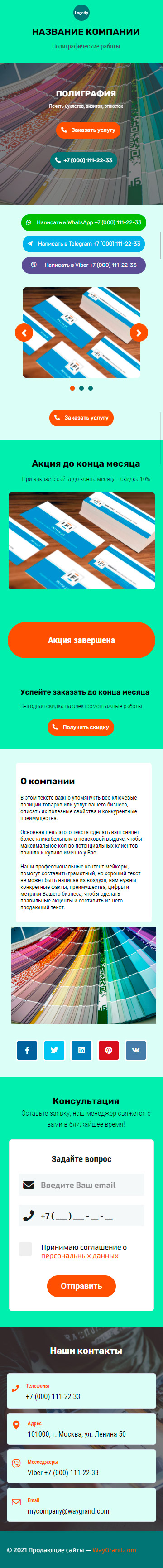 Закажите готовый продающий сайт визитка #1826101 в Курске за 5-7 дня «под ключ»: свёрстан, отрисован и готов к рекламе. Тематика шаблона «Полиграфия».