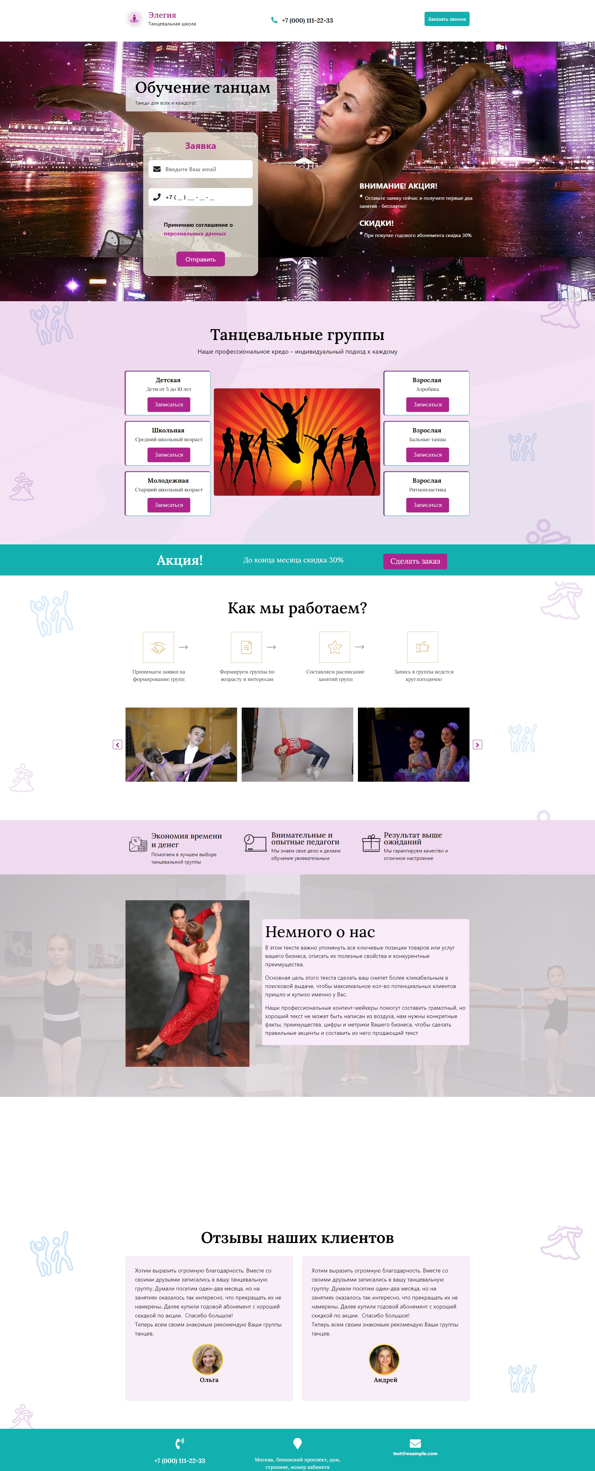 Закажите готовый продающий сайт лендинг #1923201 в Курске за 1-3 дня «под ключ»: свёрстан, отрисован и готов к рекламе. Тематика шаблона «Обучение танцам».