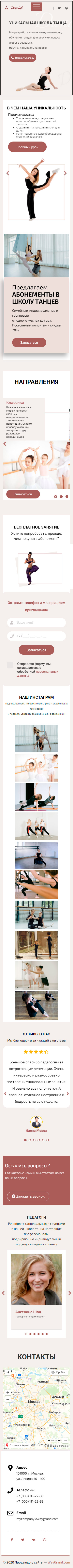 Закажите готовый продающий сайт лендинг #1923202 в Курске за 1-3 дня «под ключ»: свёрстан, отрисован и готов к рекламе. Тематика шаблона «Школа танцев».