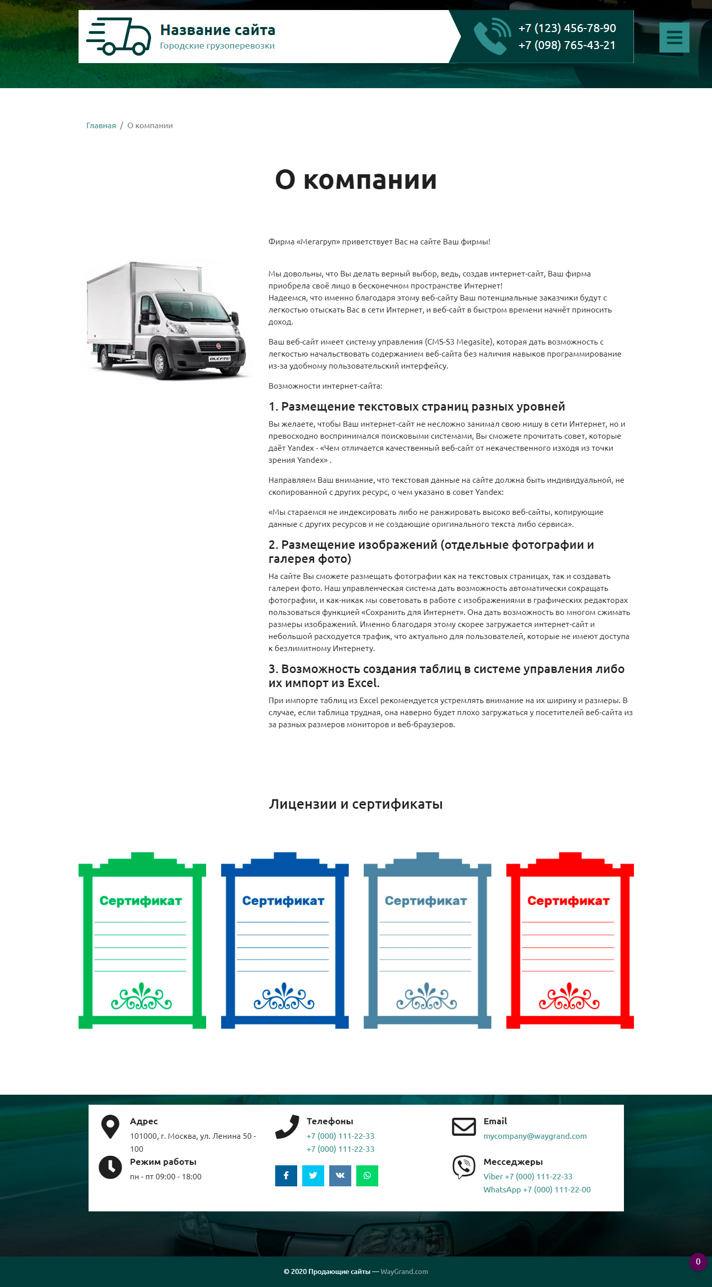 Закажите готовый продающий сайт визитка #2515302 в Курске за 5-7 дня «под ключ» по доступным ценам на WayGrand: свёрстан, отрисован и готов к рекламе. Тематика шаблона «Городские грузоперевозки».
