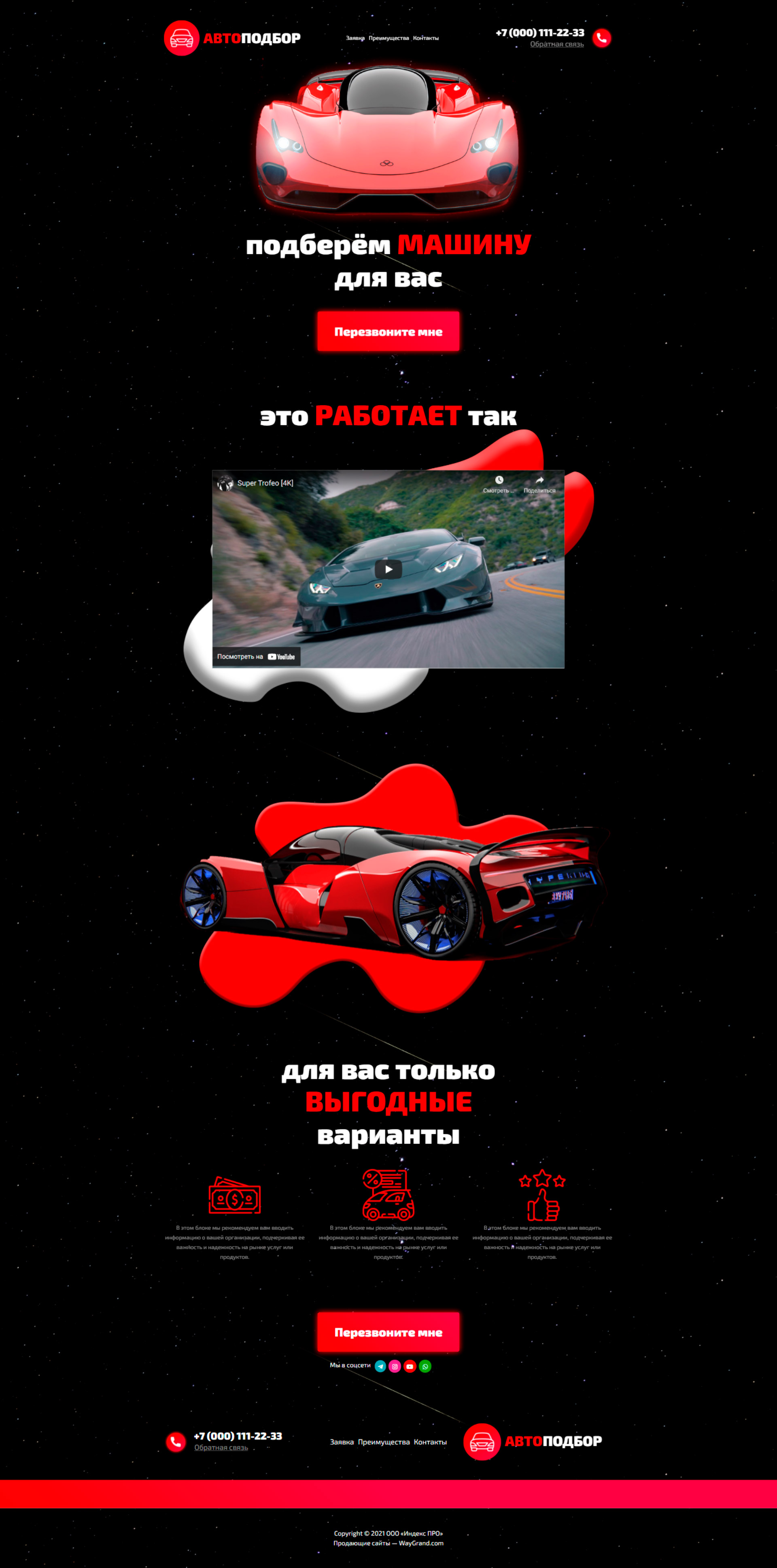 Закажите готовый продающий сайт лендинг #3275201 в Курске за 1-3 дня «под ключ»: свёрстан, отрисован и готов к рекламе. Тематика шаблона «Автоподбор».