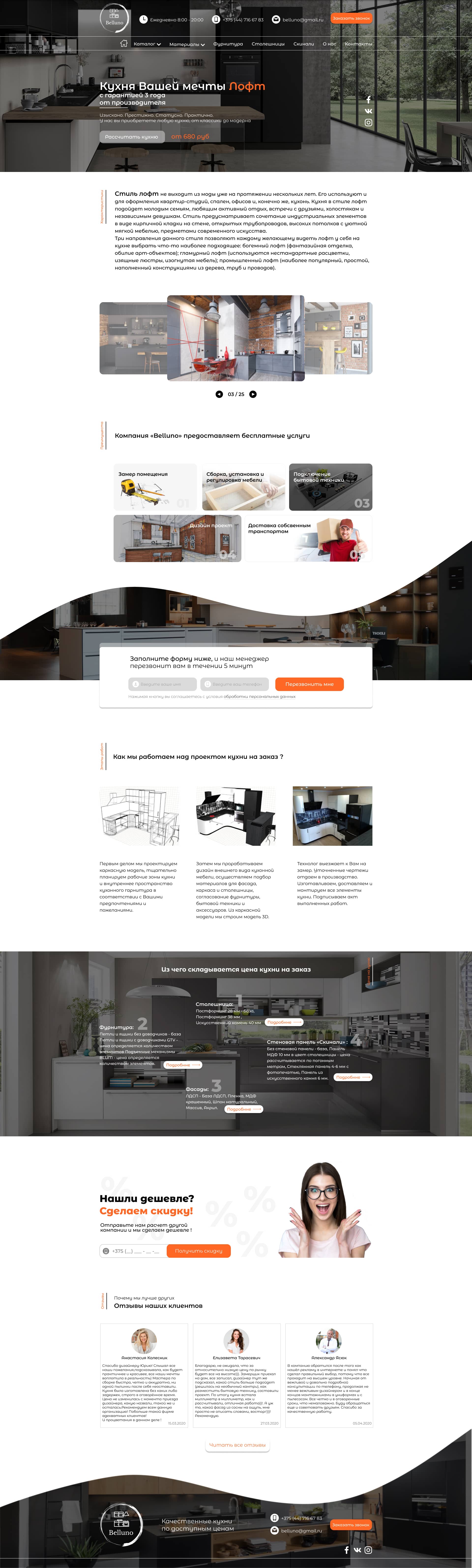- Промоблок "Кухня Вашей мечты" с кнопкой призыва к действию "Рассчитать кухню"