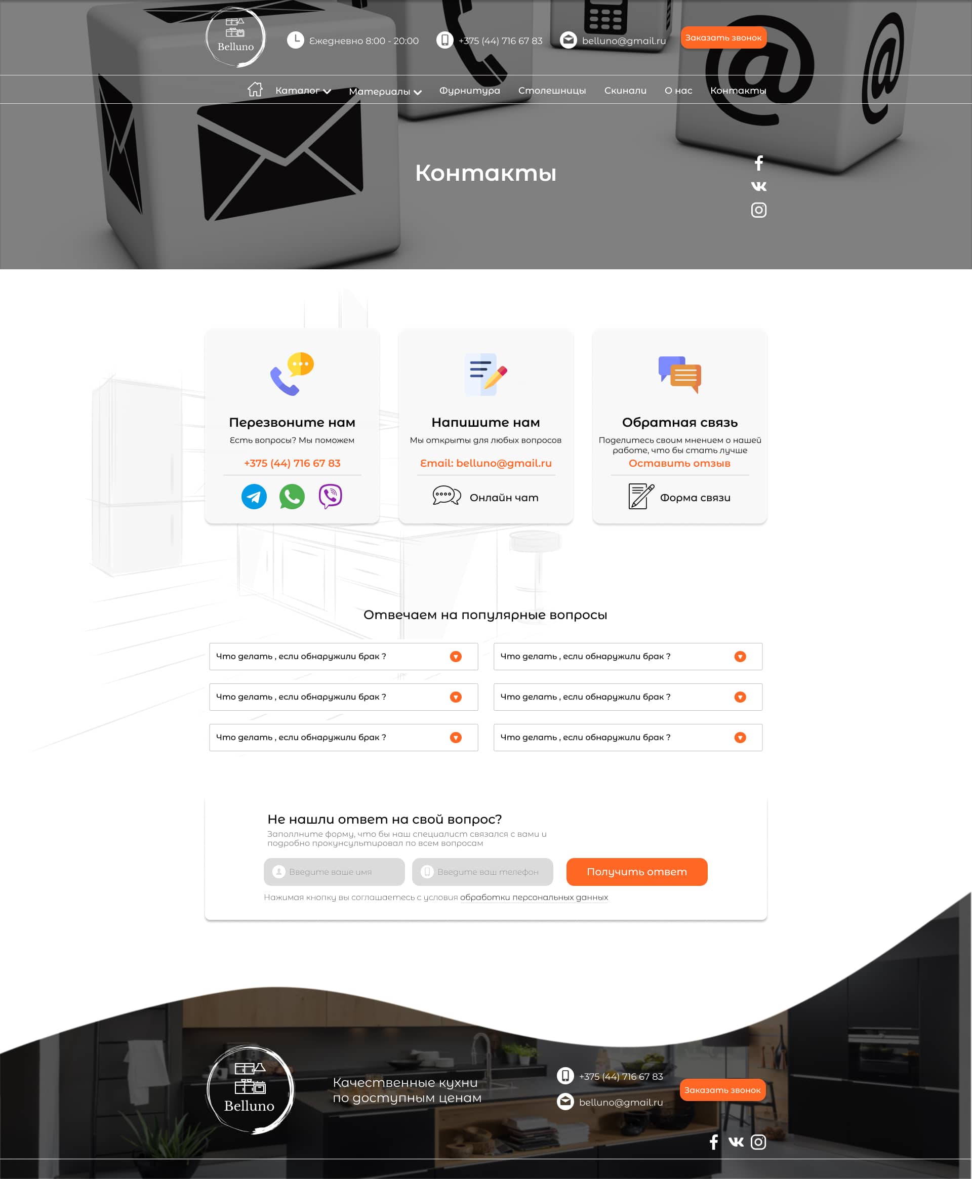Закажите готовый продающий сайт визитка #282 в Курске за 5-7 дня «под ключ»: свёрстан, отрисован и готов к рекламе. Тематика шаблона «Кухни».
