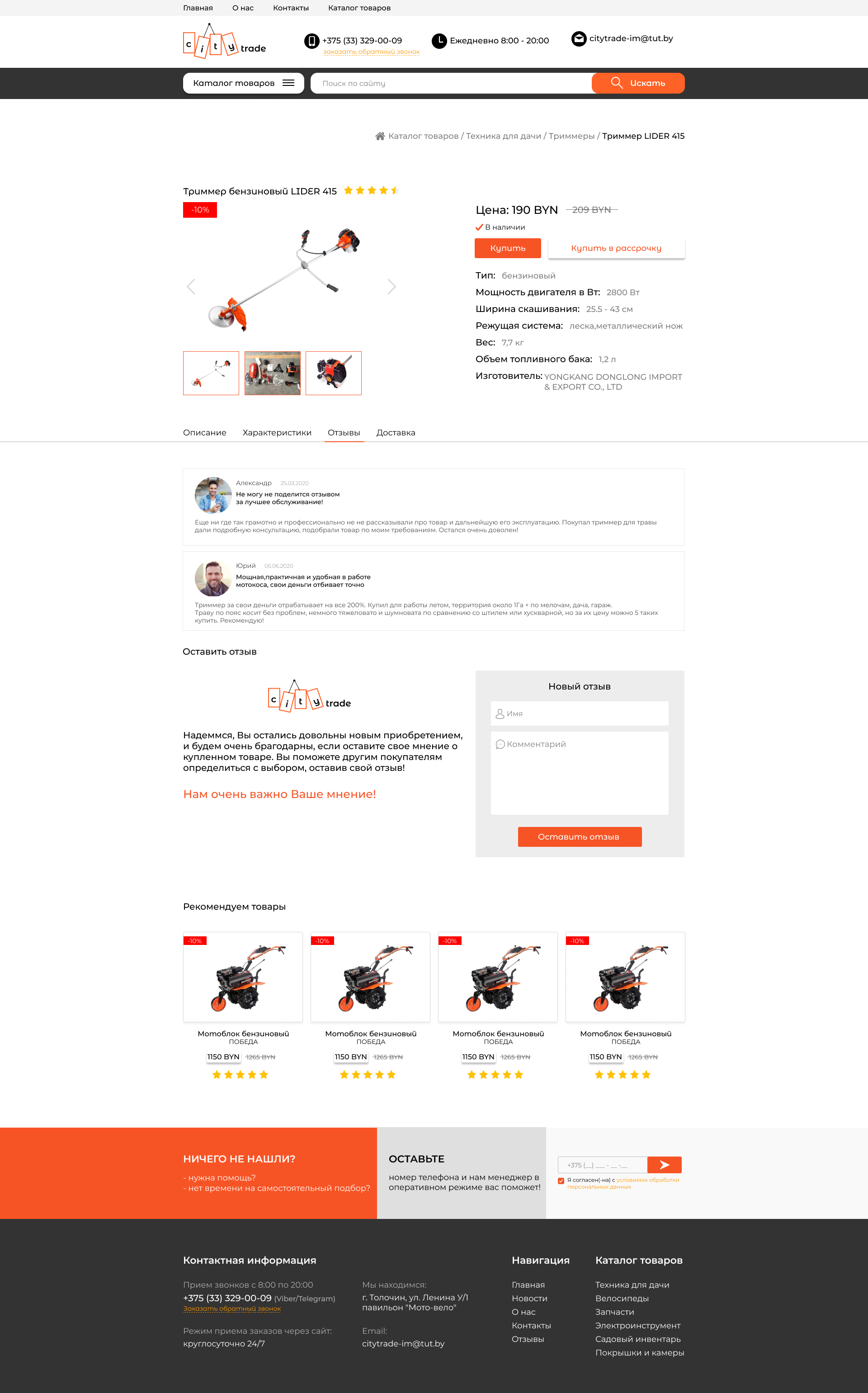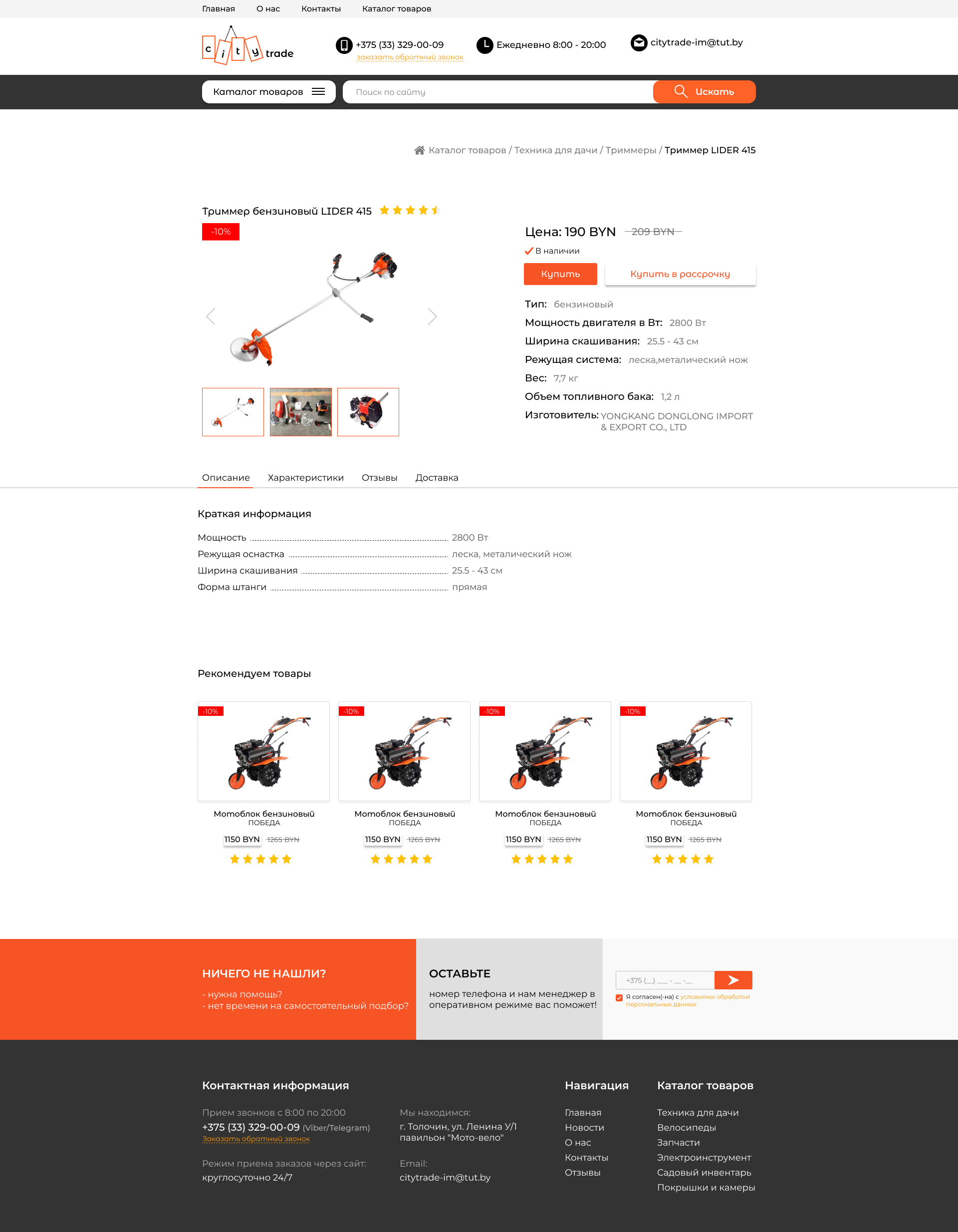Закажите готовый продающий сайт визитка #281 в Курске за 5-7 дня «под ключ»: свёрстан, отрисован и готов к рекламе. Тематика шаблона «Розничная продажа садовой техники, велосипедов».
