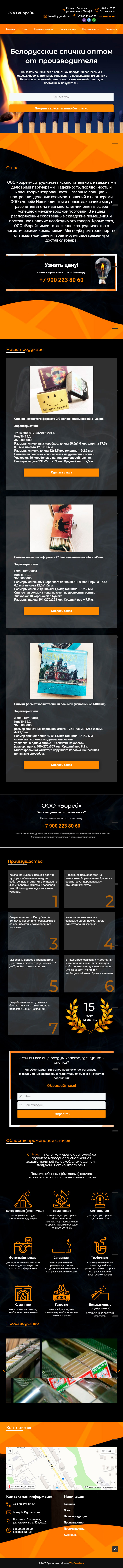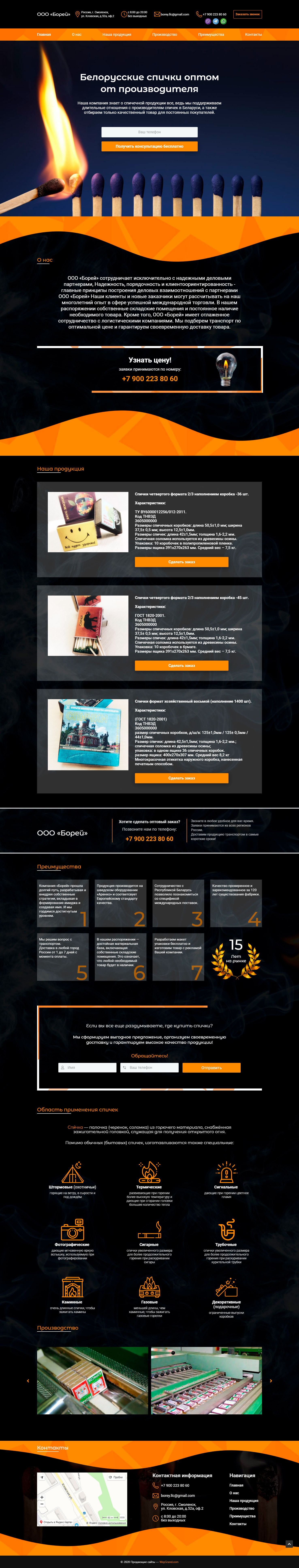 Закажите готовый продающий сайт лендинг #115 в Курске за 1-3 дня «под ключ»: свёрстан, отрисован и готов к рекламе. Тематика шаблона «Белорусские спички оптом от производителя».