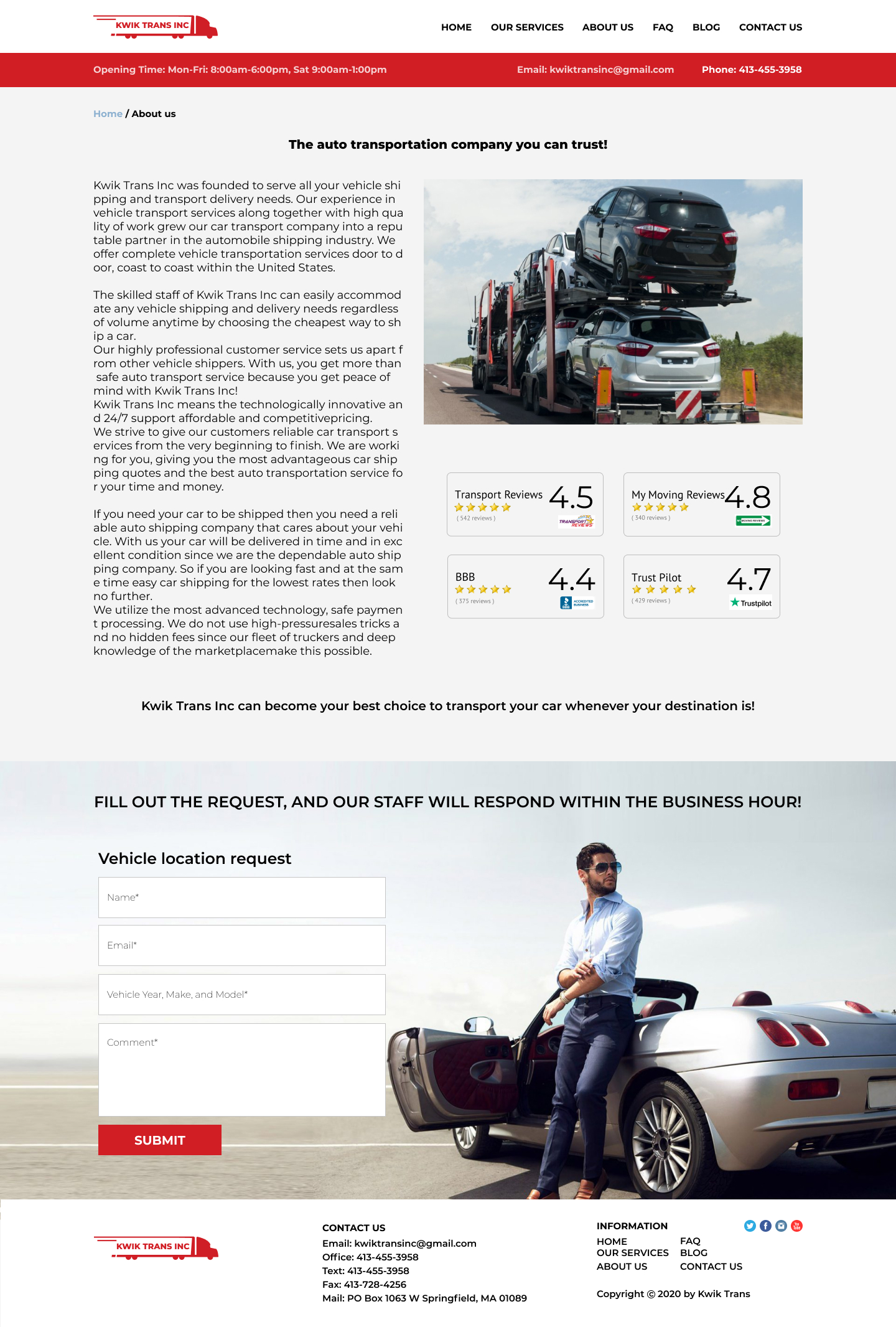 Закажите готовый продающий сайт визитка #223 в Курске за 5-7 дня «под ключ»: свёрстан, отрисован и готов к рекламе. Тематика шаблона «Safe & Reliable National Auto Transport».